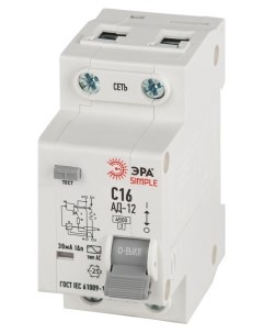 Диф.автомат АВДТ 4,5кА SIMPLE D12T2C16AC30АД-12электронное 1P+N C16 30мА тип АС