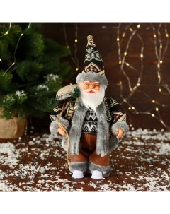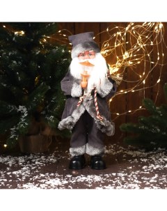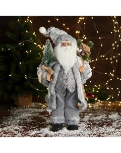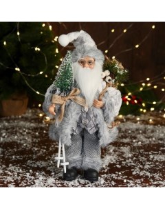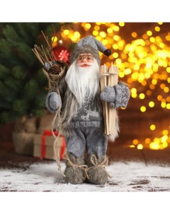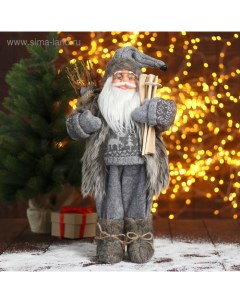 Дед Мороз под ёлку «. Новогодняя игрушка в сером костюме с лыжами», 45 см