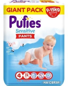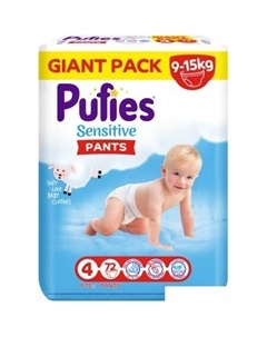 Подгузники-трусики для детей Sensitive Maxi 72 (9-15 кг)