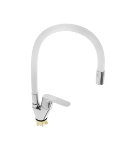 Смеситель для кухни A4890G-3, однорычажный, силиконовый излив, латунь, белый, хром