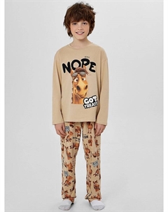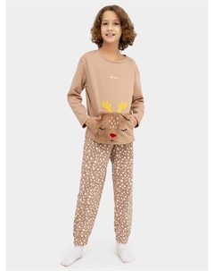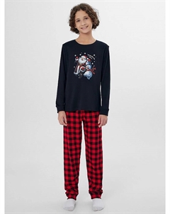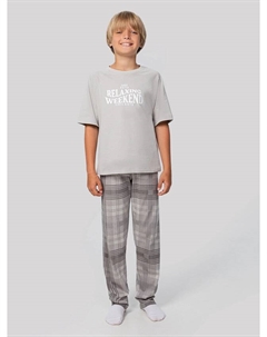 Комплект для мальчиков (джемпер, брюки) пыльно-мятный в графитовую клетку