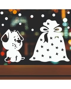 Декоративная наклейка для окон «Щенок и подарки», 55×34 см