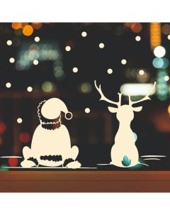Интерьерная наклейка на окна «Медведь и зайка», 40×45 см (снег 10×20 см)
