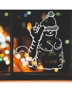Декоративная наклейка для окон «Кот и снеговик», 45×55 см