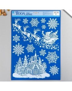 Декоративная наклейка интерьерная «Санта мчится на оленях» 29×41 см