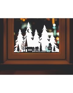 Наклейка декоративная для окон «Дома на фоне елей», 50×34 см