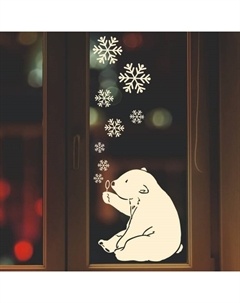 Интерьерная наклейка на окна «Мишка и снежинки», 40×47 см