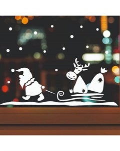 Декоративная наклейка для окон «Снеговик на санках», 45×65 см