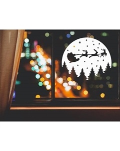 Наклейка декоративная для окон «Санта на фоне луны», 37×32 см