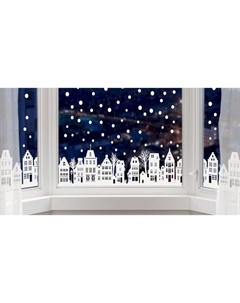 Интерьерная наклейка на окна «Снежный город», 140×25 см (снег 10×40 см)
