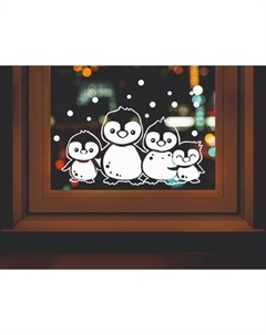 Наклейка декоративная для окон «Пингвины», 45×25 см, (снег 10×20 см)