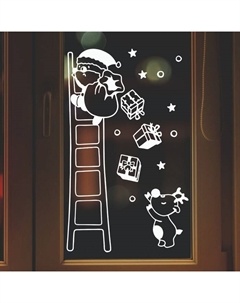 Наклейка для окон и зеркал «Дедушка мороз и гномики» 29×41 см