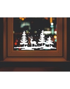 Наклейка декоративная для окон «Олень в лесу», 50×24 см, (снег 10×20 см)