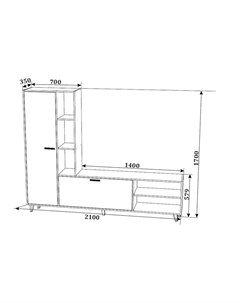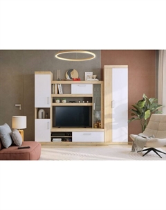 Стенка для гостиной «Макси К1», 1850×470×1870 мм, цвет дуб сонома/белое дерево