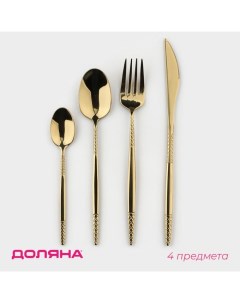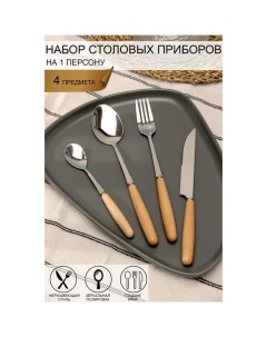 Набор столовых приборов Wood, 4 предмета, нержавеющая сталь, цвет металла серебряный